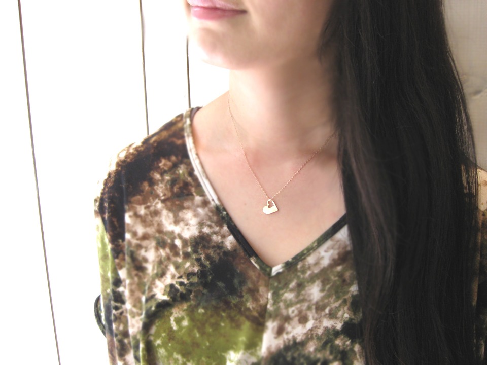 40cmのチェーンがついていますが、ハートの形の穴部分にチェーンを通すデザインなのでチェーンが通しやすく、