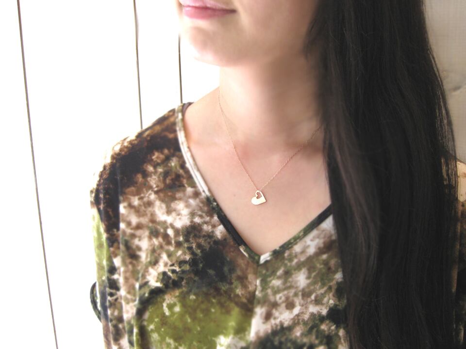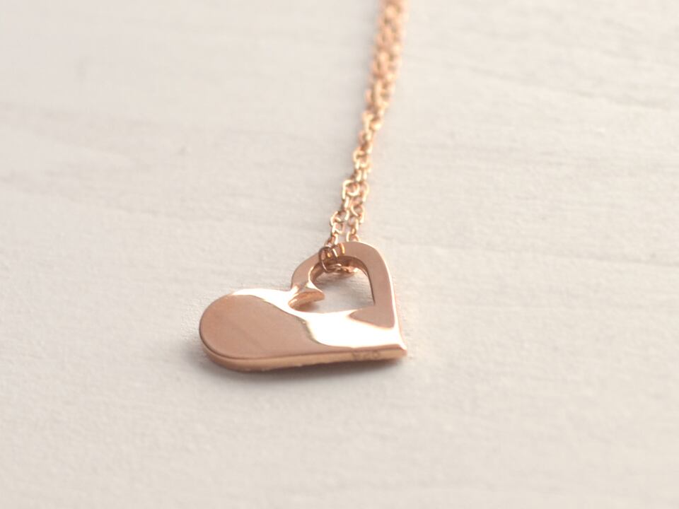 ハート型に切り抜かれた部分にチェーンを通すデザインです。